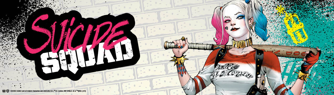 Disse forbrydere omfatter den helt vanvittige Harley Quinn, lejemorderen Deadshot, El Diablo den pyrokinetiske ex-gangster, Captain Boomerang den opportunistiske tyv, den genetiske mutation Killer Croc og Slipknot den højtuddannede snigmorder. Det er meget bedre at være en del af Suicide Squad, da ingen vil have disse skurke som deres fjender. Få alt hvad du behøver for at identificere dig som en del af gruppen hos EMP. Herunder tøj, accessories, figurer, og meget mere.