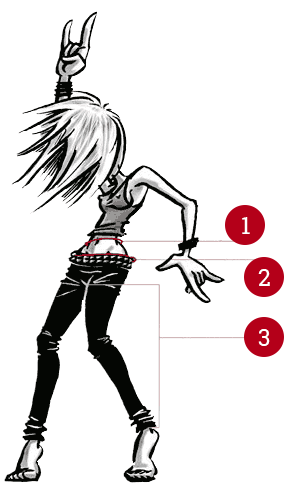 Taljen måles om det smalleste sted på overkroppen. Ca. mellem hofteben (bækken) og nederste ribben.