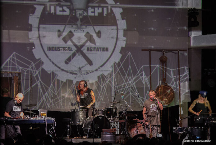 Genrer som power electronics, dark ambient, ritual, military pop og death industrial opstod ud fra denne oprindelige industrielle og postindustrielle musik med bands som Einstürzende Neubauten. Nærheden til den sorte scene opstod bl.a. gennem musikalske overlapninger med elektronisk punk og postpunk. Kendte repræsentanter er Skinny Puppy, DAF og Die Krupps. I dag bruges begreberne industrial rock og industrial metal om bands som Ministry eller Nine Inch Nails. Under alle omstændigheder kan man sige, at den oprindelige industrimusik på et tidspunkt bragte de tungere og militære lyde ind på den sorte scene.
